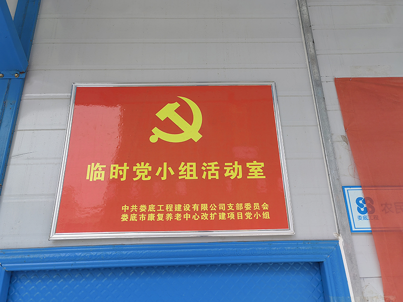 公司黨支部秉承“抓黨建就是抓生產力”的理念,全力推進“黨建進工地、支部建在項目上”標桿創建活動,努力實現“生產一線有黨員、業務骨干是黨員、關鍵時刻看黨員”的工作目標。于2023年4月1日成立婁底市康復養老中心改擴建項目黨小組,現有正式黨員3名。項目部設有專門的黨建活動場所,黨組織標識牌、黨旗、入黨誓詞等全部設置在顯目位置。場外設置了專門的黨建宣傳欄。