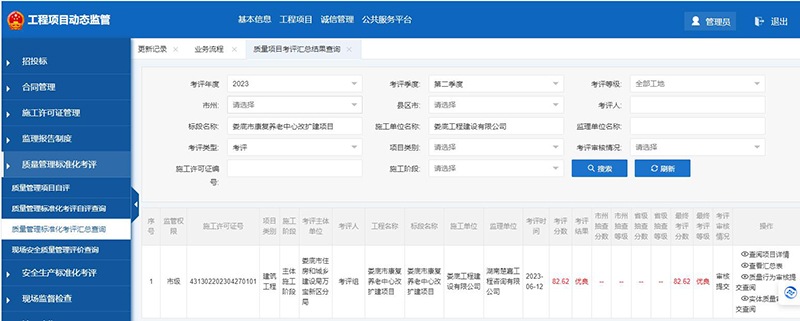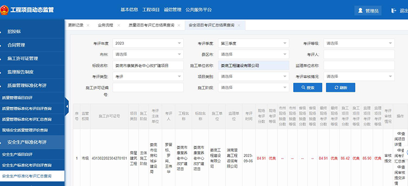 該項目在2023年度安全生產標準化季度考評和質量管理標準化季度考評中獲得了較好成績。質量管理標準化季度考評第二、三季度被評為優良;安全生產標準化季度考評第三、四季度被評為優良。