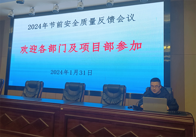 2024年1月31日15點,公司在多功能會議廳召開“歲末年初安全生產檢查反饋暨2024年重點工作部署會議”。公司黨支部書記何林、總工程師李偉、副總經理彭洪偉、總經理助理姜建輝、副總經理彭詠松出席了此次會議,機關員工及項目管理人員80余人參加了此次會議。